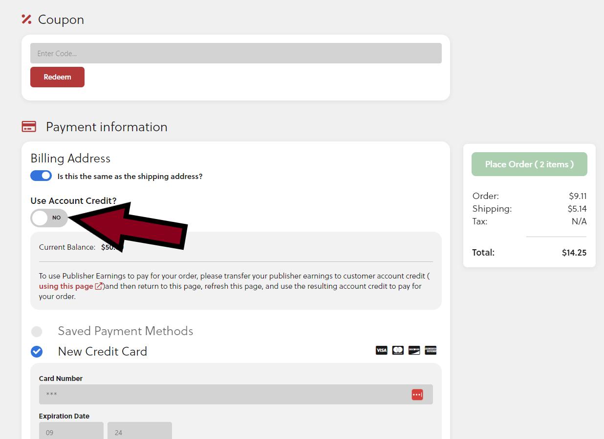 - Sobald dies geschehen ist, wird der Gesamtbetrag deiner Bestellung angepasst, da du dein Guthaben auf deinem Konto verwendet hast.