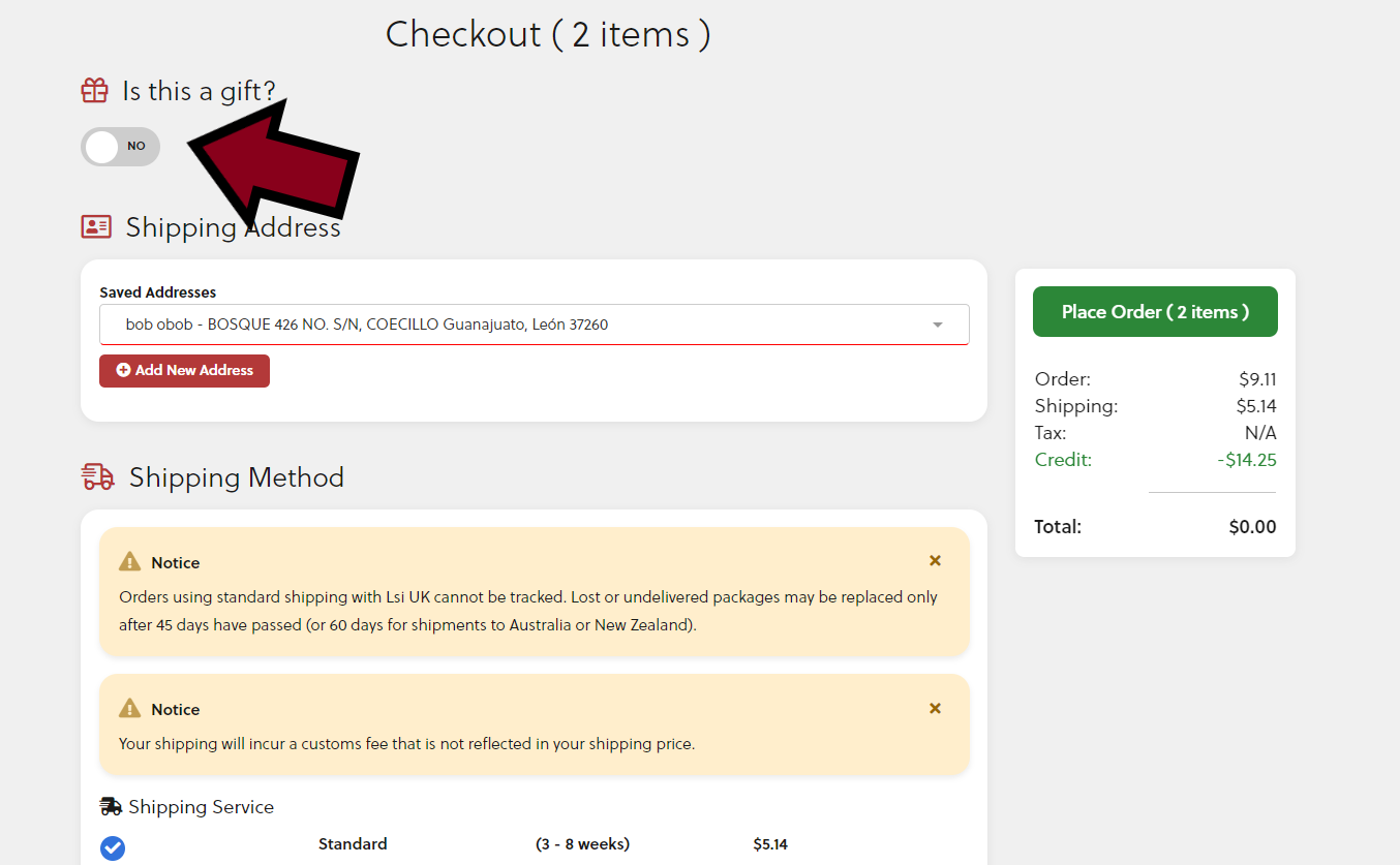 - At the top of the checkout page, find the section titled "Is this a gift?" and click on the slide button: